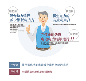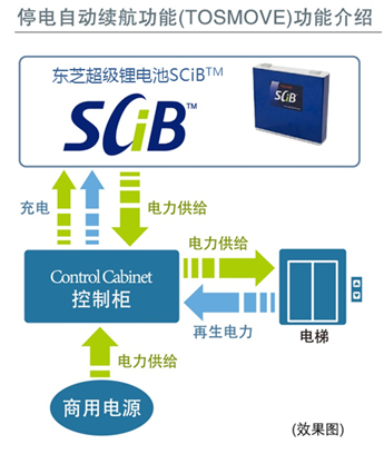 作為ELCOSMO-III型乘客電梯的專屬附加功能,“TOSMOVE”在發(fā)生停電之后將迅速切換至電池模式,以低速運行至最近樓層,并可在隨后保持0.5米/秒的速度續(xù)航長達30分鐘。在續(xù)航過程中,電梯轎廂內(nèi)的照明和換氣裝置可正常工作,為乘客提供便利。“TOSMOVE”系統(tǒng)模塊搭載東芝超級鋰電池SCiBTM,采用氯化物新型材料,較一般鋰電池具有更長的使用壽命和更好的低溫特性。即使發(fā)生內(nèi)部短路,緩慢電流也能有效抑制發(fā)熱,確保使用安全性。