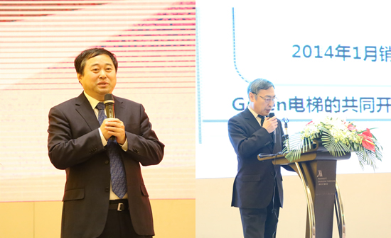 中國電梯協(xié)會張秘書長對未來電梯市場的發(fā)展趨勢進行展望,并預(yù)祝東芝電梯能夠憑借自己的技術(shù)實力,在2015年能夠獲得更好業(yè)績和發(fā)展。東芝電梯株式會社上席常務(wù)總技師長吉次達夫在本次大會中,向大家介紹主力產(chǎn)品競爭力強化解決方案,其中包括GREEN機種系列產(chǎn)品線的強化,增加中高端電梯可選式樣功能等內(nèi)容,提供更適合未來市場的產(chǎn)品。之后,銷售企畫部部長蔣文忠從市場分析入手,將新機種ELCOSMO-E,ELCOSMO-E PLUS從產(chǎn)品參數(shù)、內(nèi)飾裝潢到銷售模式,向廣大代理商進行推廣。副總裁陳木松在愿景和激勵中,借由樹木成長寓意東芝電梯與代理商的合作伙伴關(guān)系,并希望大家在困境中共同尋求機會,創(chuàng)造出路。
